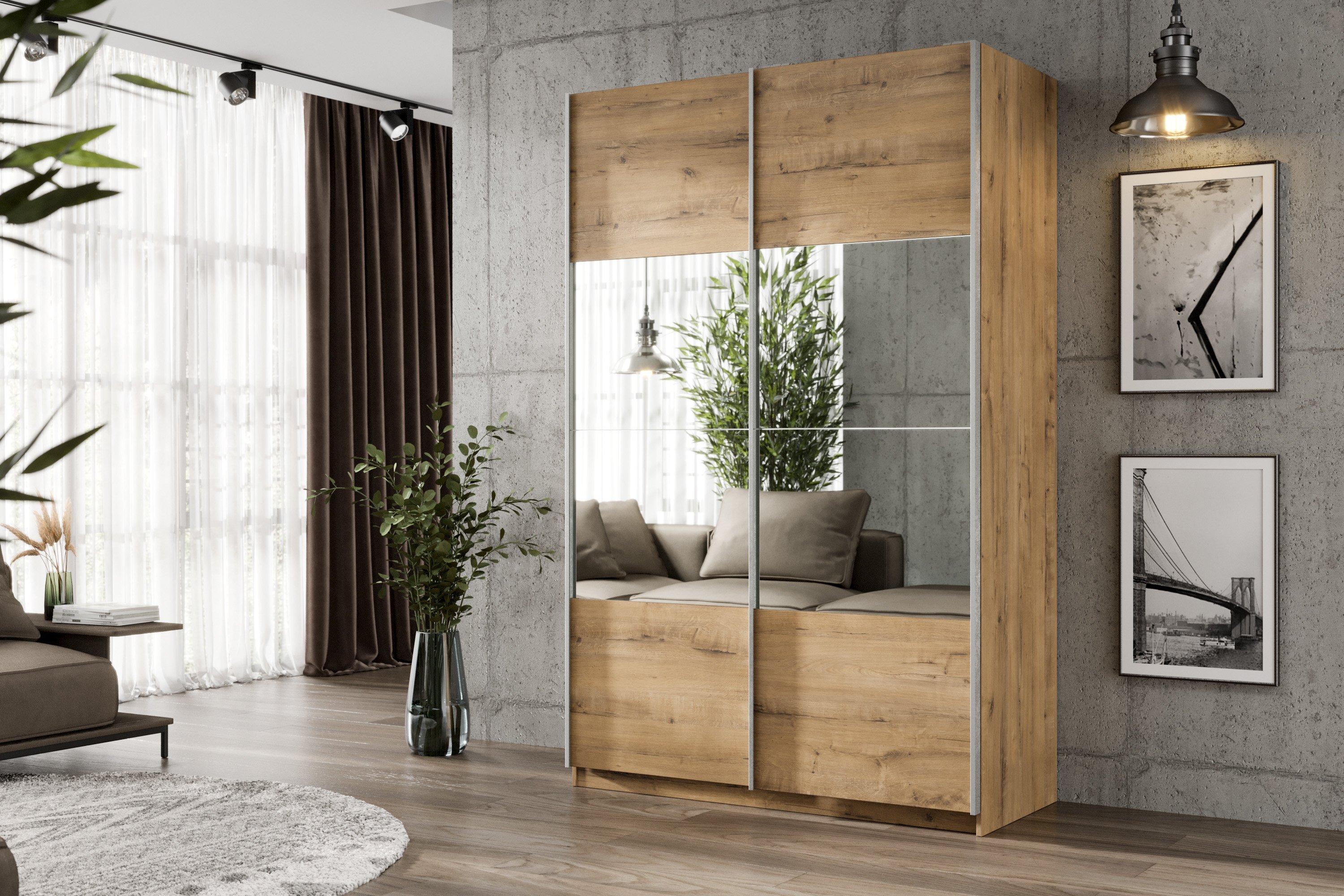 Шкаф-купе Smart 1222 2х дверный (фасады ЛДСП/зеркало) профиль серебро                                 (Бунратти)