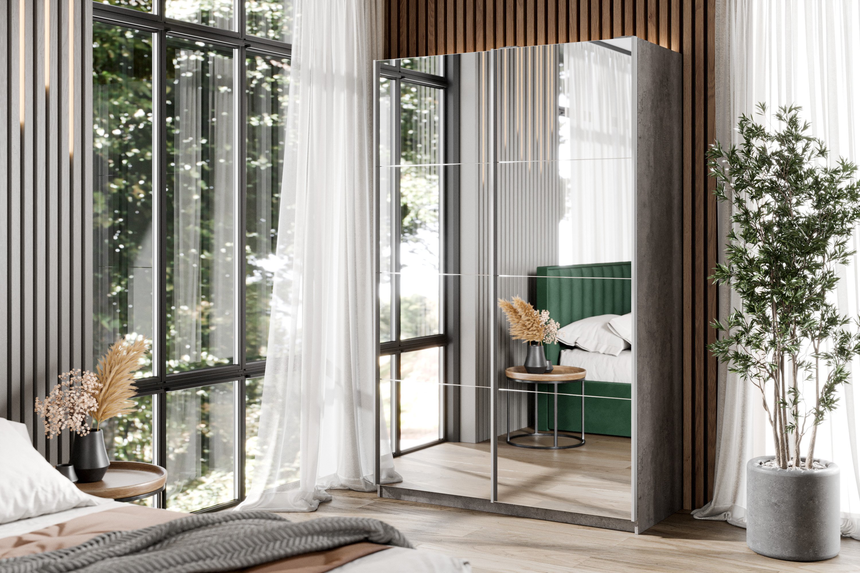 Шкаф-купе Smart 1424 2х дверный (фасады зеркало) профиль серебро                                 (Бетон)