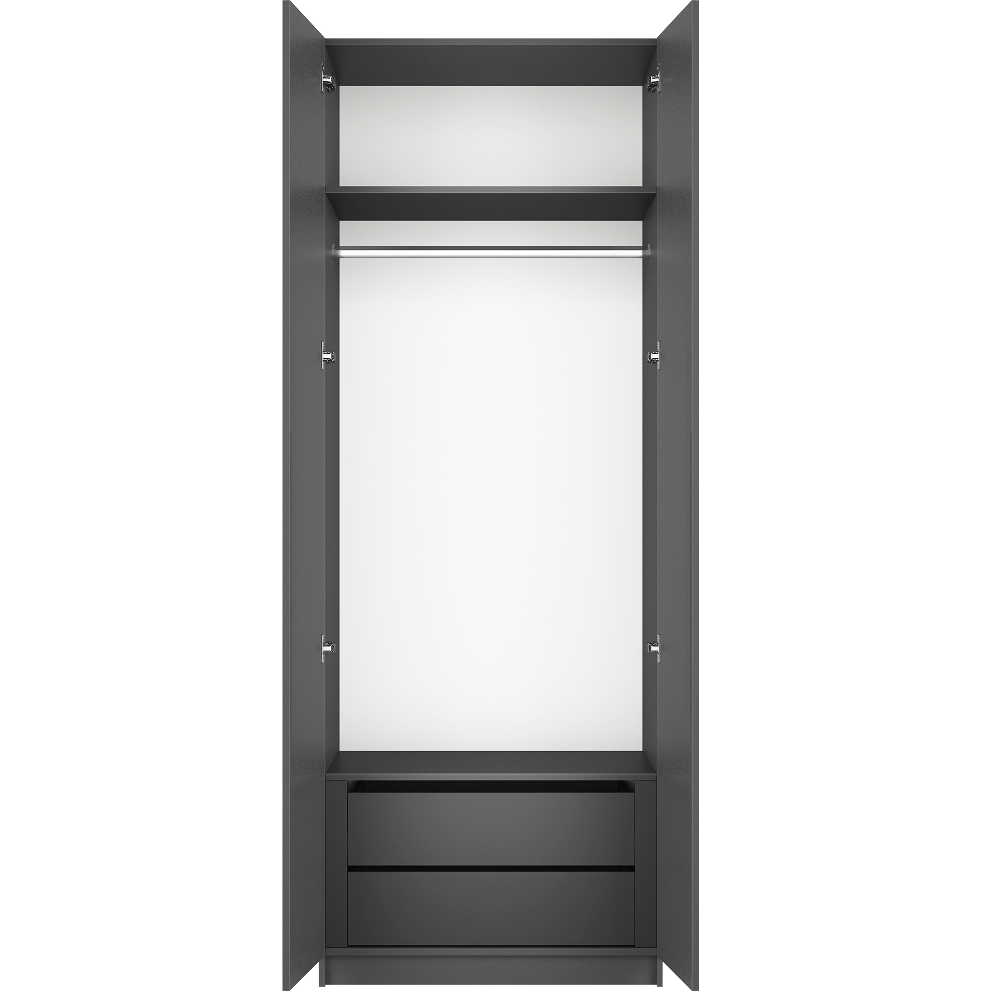 Благодаря надежным полкодержателям - штифтам, полки шкафа могут выдерживать до 15 кг, штанга выдерживает нагрузку до 60 кг. Вы сможете убрать сезонные вещи, постельное белье на верхние полки. Распашной шкаф оснащен долговечной, ударостойкой кромкой ПВХ, которая защищает его торцы от сколов и повреждений, что обеспечит вам комфортное и долгое использование гардероба. Распашная система дверей Titus B-Type обеспечивает надежное прилегание дверцы к корпусу шкафа и высокую износостойкость. Механизм не деформируется при значительных нагрузках и максимально практичен в эксплуатации. Шкаф оснащен удобной минималистичной ручкой, изготовленной из алюминия.