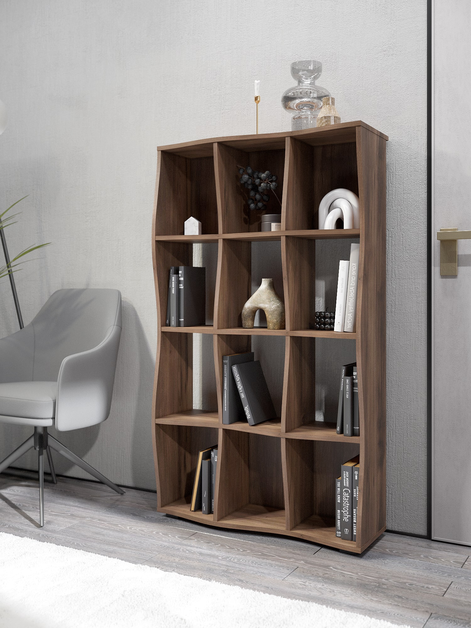 • Функциональность: открытые полки для хранения книг, аксессуаров и декора.
