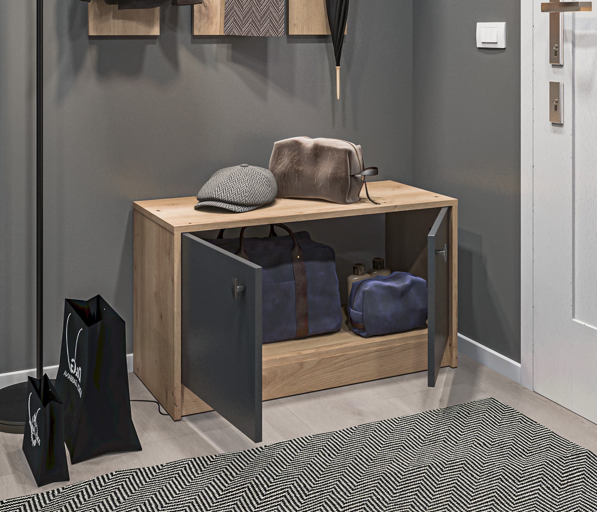 Каждый элемент комплекта "Сидней" представлен в современном стиле Лофт, сочетая в себе функциональность, эстетику и практичность для максимального удобства вашего пространства. Дополните вашу прихожую другими Модульной системы Сидней.